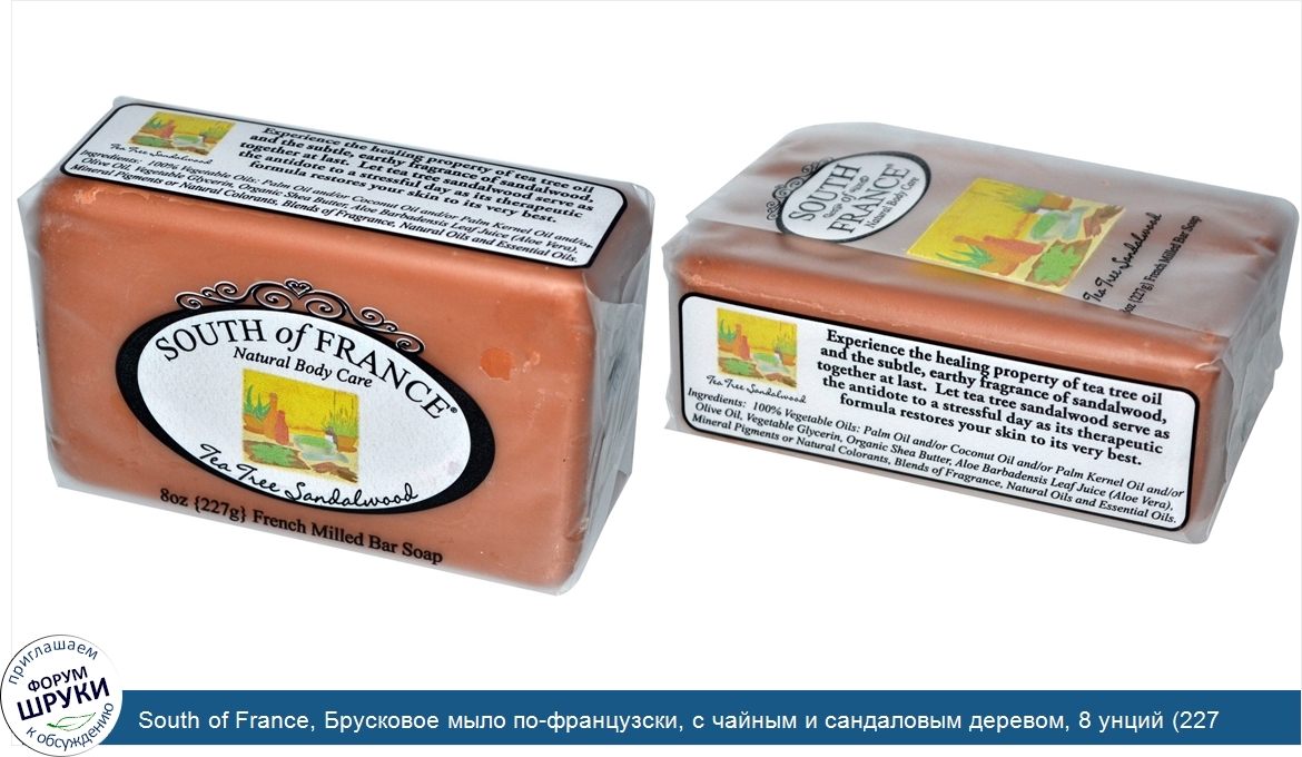 Друзья, если у вас есть отзыв/дополнение/комментарий/вопрос относительно South of France, Брусковое мыло по-французски, с чайным и сандаловым деревом, 8 унций (227 г) - напишите его ответом в эту тему (это будет полезно всему сообществу в целом и вам в отдельности).