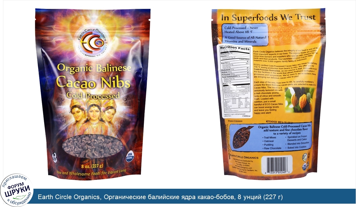 Друзья, если у вас есть отзыв/дополнение/комментарий/вопрос относительно Earth Circle Organics, Органические балийские ядра какао-бобов, 8 унций (227 г) - напишите его ответом в эту тему (это будет полезно всему сообществу в целом и вам в отдельности).