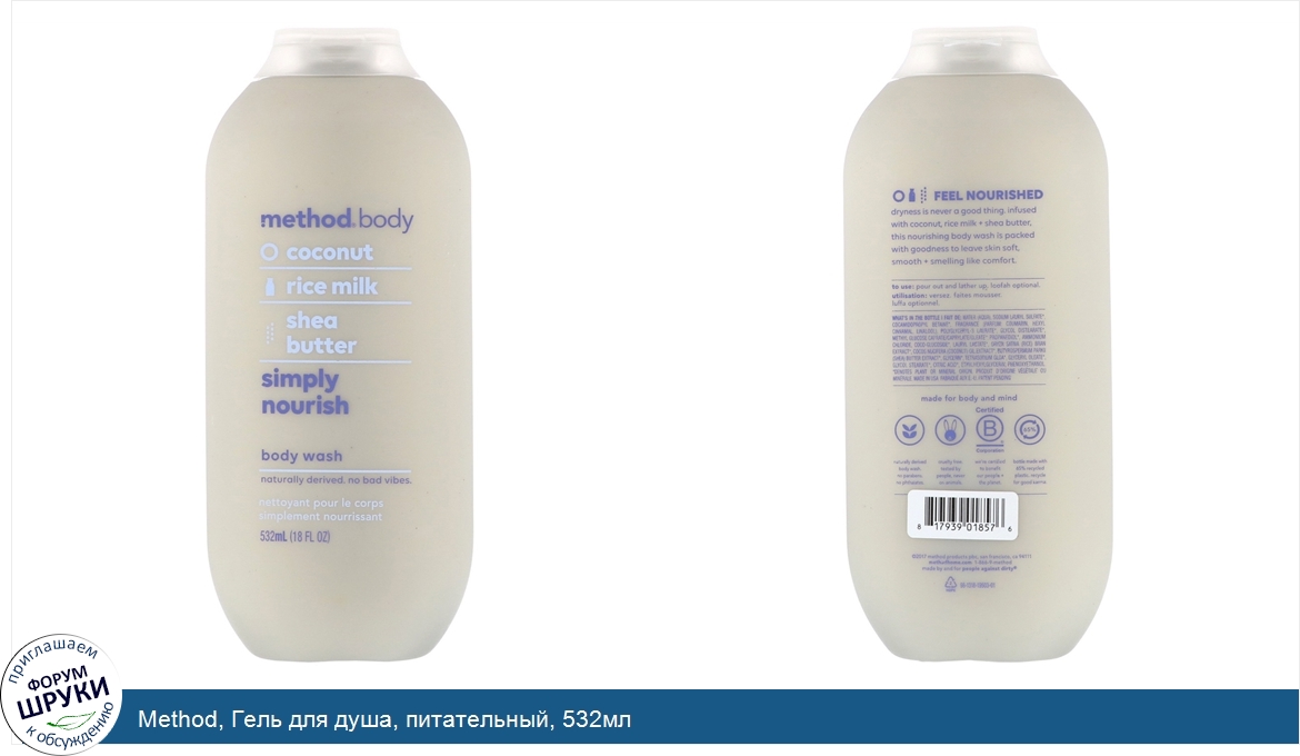 Друзья, если у вас есть отзыв/дополнение/комментарий/вопрос относительно Method, Гель для душа, питательный, 532мл - напишите его ответом в эту тему (это будет полезно всему сообществу в целом и вам в отдельности).