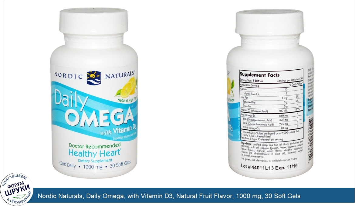 Друзья, если у вас есть отзыв/дополнение/комментарий/вопрос относительно Nordic Naturals, Daily Omega, with Vitamin D3, Natural Fruit Flavor, 1000 mg, 30 Soft Gels - напишите его ответом в эту тему (это будет полезно всему сообществу в целом и вам в отдельности).