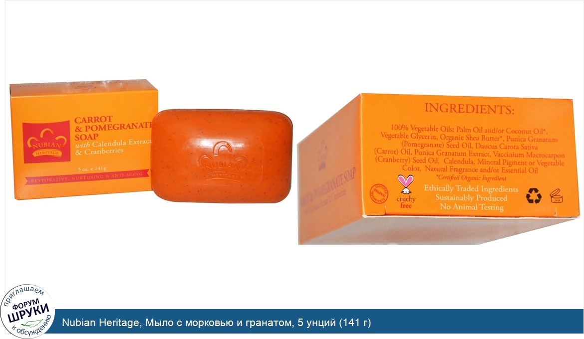 Друзья, если у вас есть отзыв/дополнение/комментарий/вопрос относительно Nubian Heritage, Мыло с морковью и гранатом, 5 унций (141 г) - напишите его ответом в эту тему (это будет полезно всему сообществу в целом и вам в отдельности).