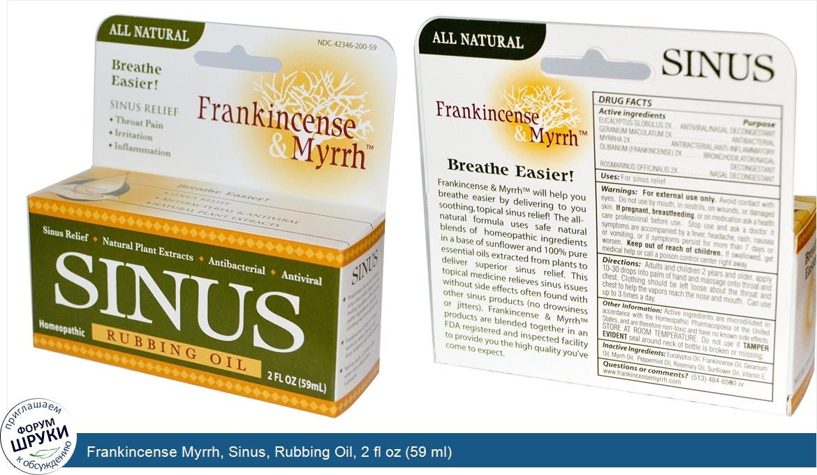 Frankincense Myrrh, Sinus, Rubbing Oil, 2 fl oz (59 ml)