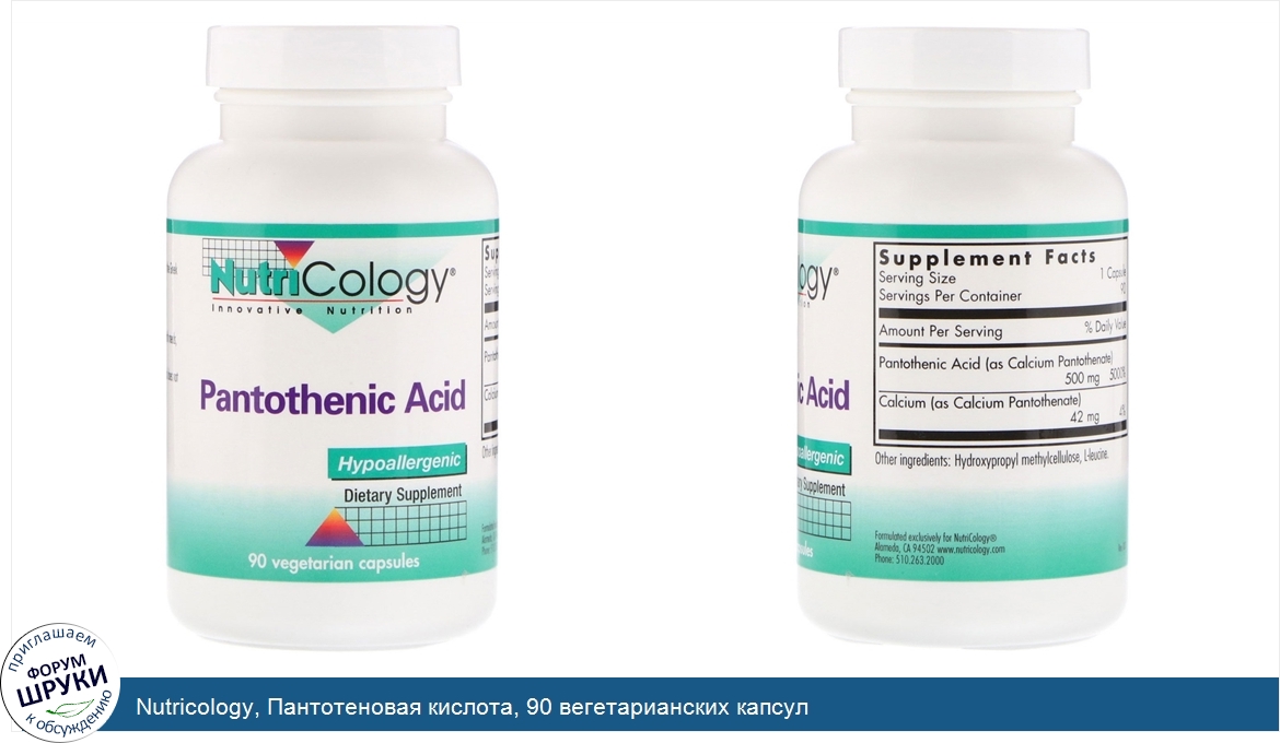Nutricology, Пантотеновая кислота, 90 вегетарианских капсул