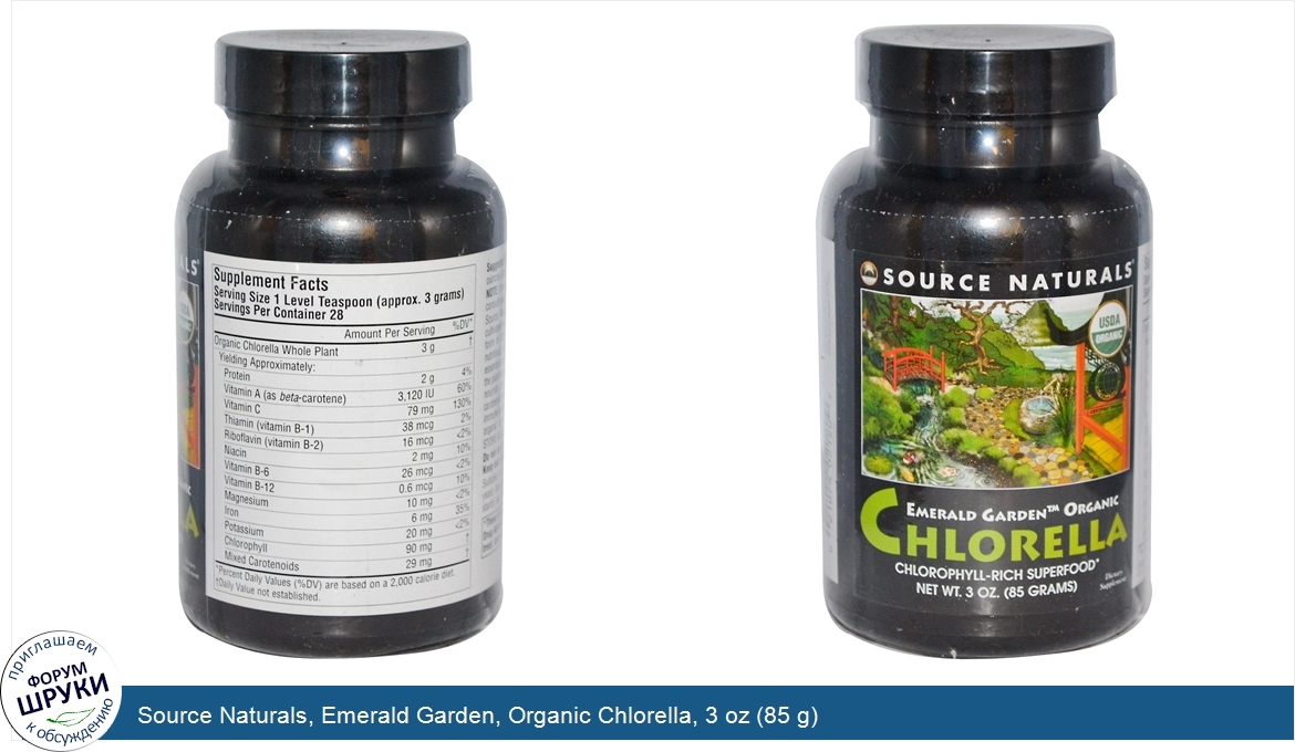 ru Source Naturals, Emerald Garden, Organic Chlorella, 3 oz (85 g)