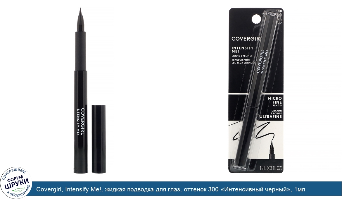 Covergirl, Intensify Me!, жидкая подводка для глаз, оттенок 300 «Интенсивный черный», 1мл (0,03 унции)
