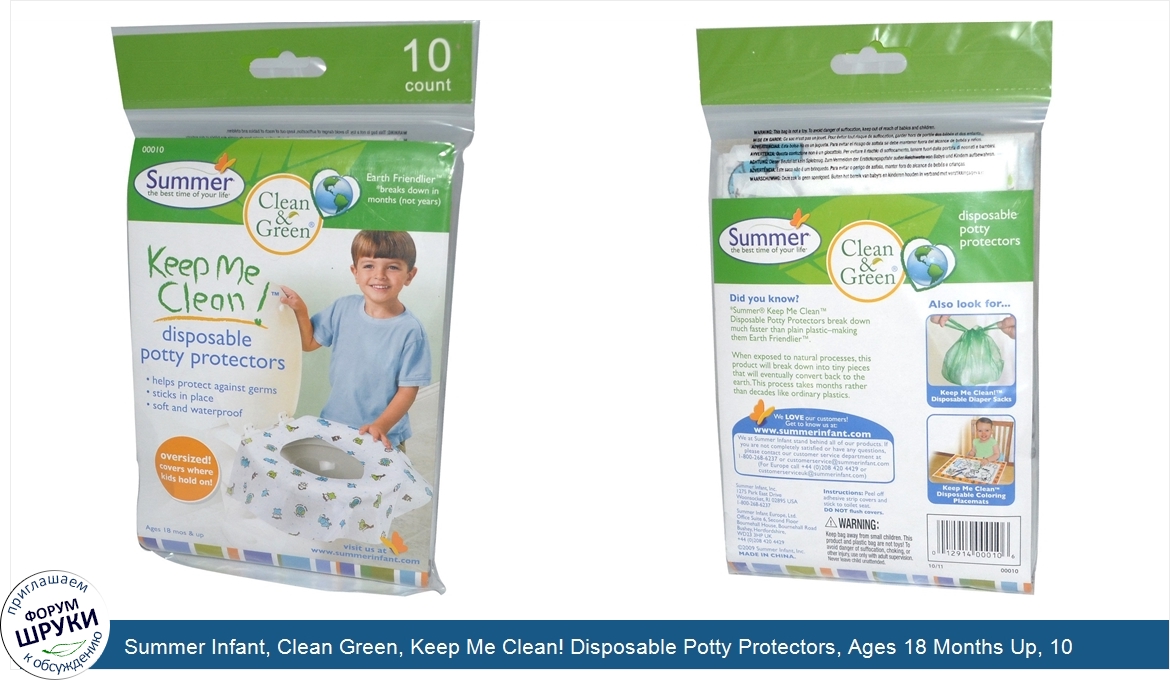 Друзья, если у вас есть отзыв/дополнение/комментарий/вопрос относительно Summer Infant, Clean Green, Keep Me Clean! Disposable Potty Protectors, Ages 18 Months Up, 10 Count - напишите его ответом в эту тему (это будет полезно всему сообществу в целом и вам в отдельности).