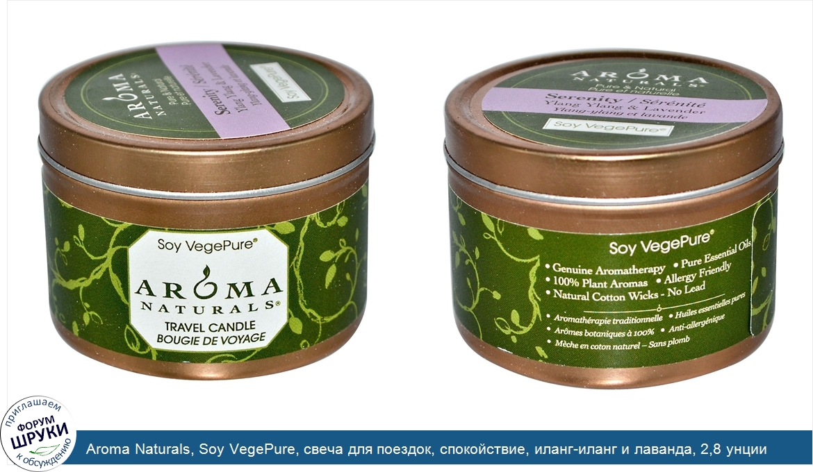 Aroma Naturals, Soy VegePure, свеча для поездок, спокойствие, иланг-иланг и лаванда, 2,8 унции (79,38 г)