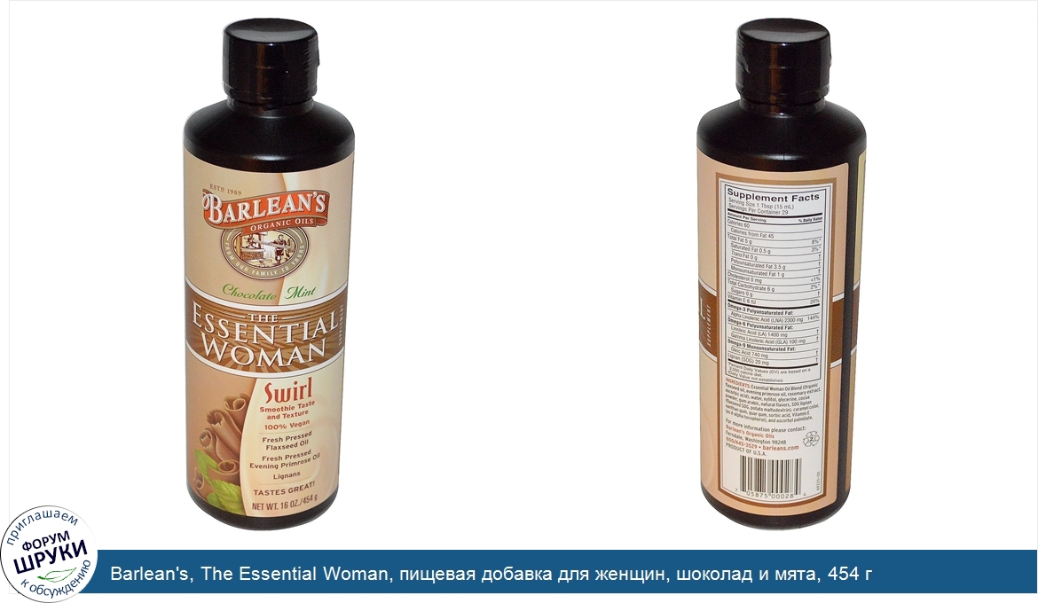 Друзья, если у вас есть отзыв/дополнение/комментарий/вопрос относительно Barlean's, The Essential Woman, пищевая добавка для женщин, шоколад и мята, 454 г - напишите его ответом в эту тему (это будет полезно всему сообществу в целом и вам в отдельности).