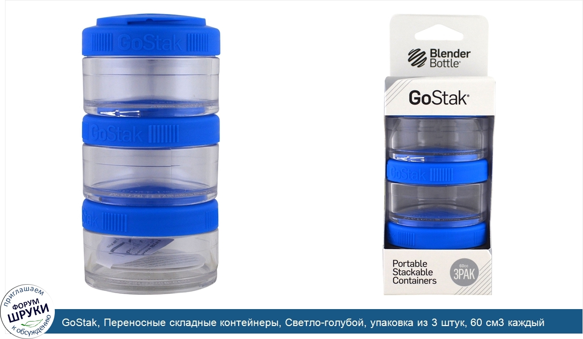 [DESCRIPT]Protein Powders. Snacks. Supplements. Travel Items More. BPA Free. Twist N' Lock System. Dishwasher Safe. Durable Eastman Tritan. material resists stains odors. Fits Inside. your Blender Bottle. Mix and Match. sizes to fit your needs. Three Pack. 3-60cc jars. Twist n’ Lock. system connects jars with ease. Go With It. Grab it. Fill it. Go With It. GoStaks are a smart and sleek advancement in portable nutrition. Durable jars secure tightly to carry powders, vitamins, supplements, snacks, and more.[/DESCRIPT]... (описание дополняется)