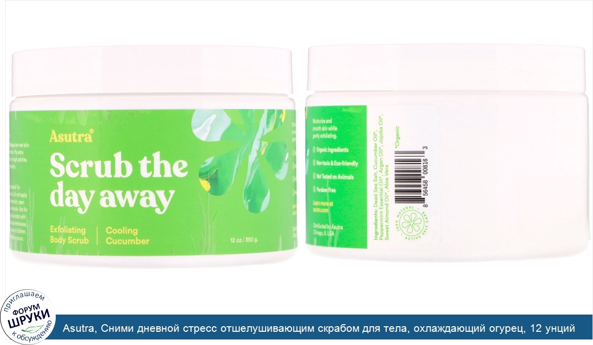 Друзья, если у вас есть отзыв/дополнение/комментарий/вопрос относительно Asutra, Сними дневной стресс отшелушивающим скрабом для тела, охлаждающий огурец, 12 унций (350 г) - напишите его ответом в эту тему (это будет полезно всему сообществу в целом и вам в отдельности).