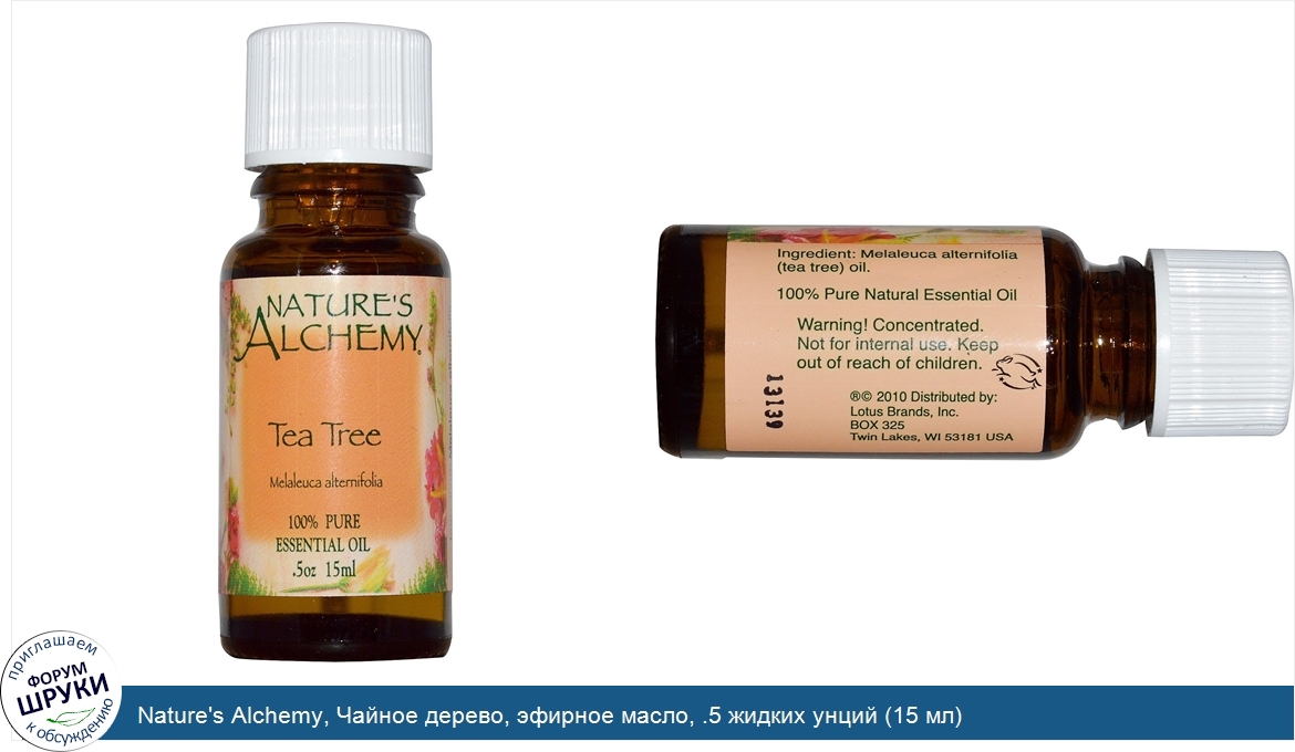 [DESCRIPT]Чайное дерево. 100% чистый продукт. 100% натуральные эфирные масла получают из растений, путем холодного отжима или перегонки паром, с применением тех же методов, которые использовал персидский врач Авиценна. Высококачественные растительные масла Nature's Alchemy не содержат химических растворителей, спирта и других добавок.[/DESCRIPT]... (описание дополняется)