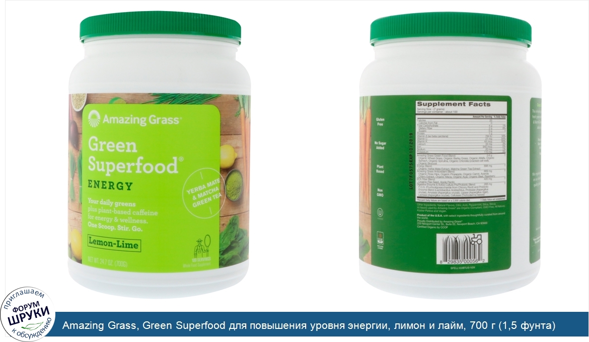 Друзья, если у вас есть отзыв/дополнение/комментарий/вопрос относительно Amazing Grass, Green Superfood для повышения уровня энергии, лимон и лайм, 700 г (1,5 фунта) - напишите его ответом в эту тему (это будет полезно всему сообществу в целом и вам в отдельности).