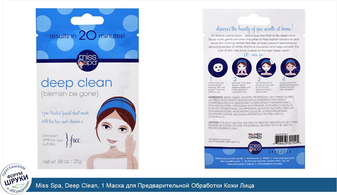 Друзья, если у вас есть отзыв/дополнение/комментарий/вопрос относительно Miss Spa, Deep Clean, 1 Маска для Предварительной Обработки Кожи Лица - напишите его ответом в эту тему (это будет полезно всему сообществу в целом и вам в отдельности).