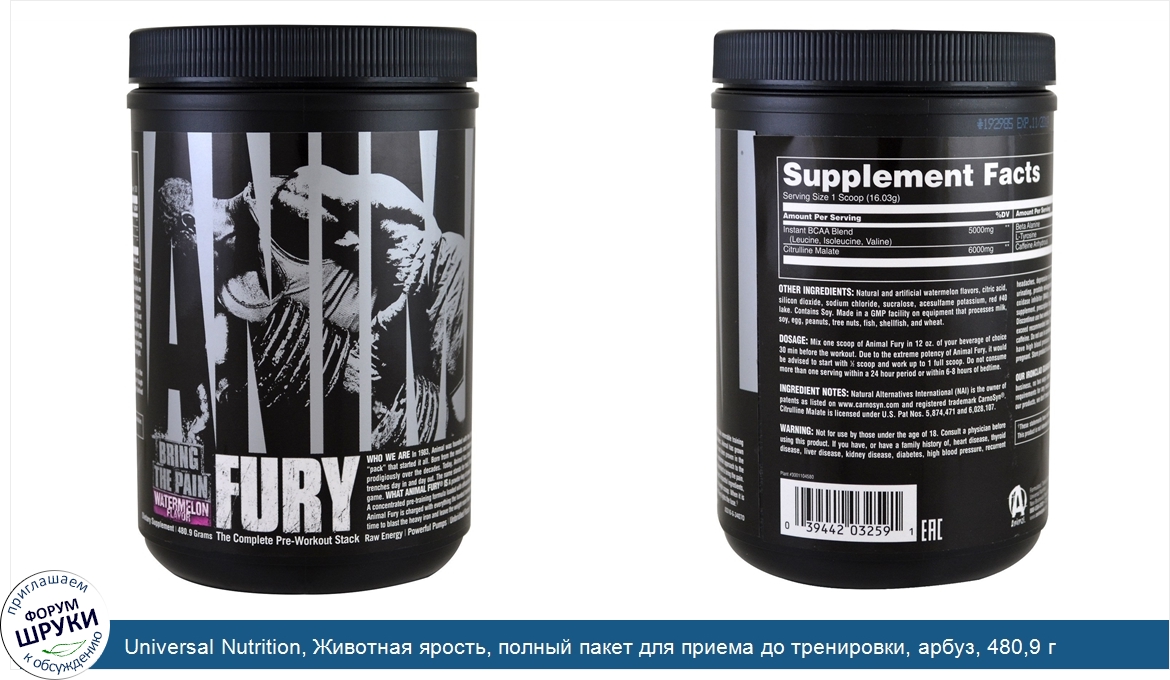 Друзья, если у вас есть отзыв/дополнение/комментарий/вопрос относительно Universal Nutrition, Животная ярость, полный пакет для приема до тренировки, арбуз, 480,9 г - напишите его ответом в эту тему (это будет полезно всему сообществу в целом и вам в отдельности).