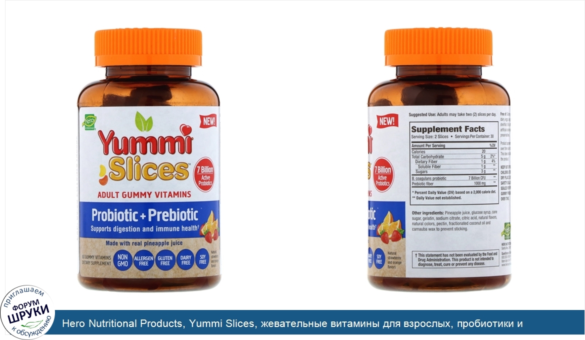 Друзья, если у вас есть отзыв/дополнение/комментарий/вопрос относительно Hero Nutritional Products, Yummi Slices, жевательные витамины для взрослых, пробиотики и пребиотики, натуральные ароматизаторы клубники и апельсина, 60жевательных таблеток с витаминами - напишите его ответом в эту тему (это будет полезно всему сообществу в целом и вам в отдельности).