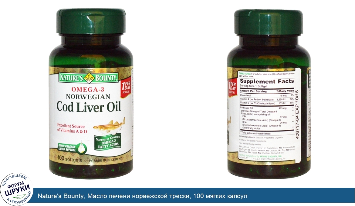 Друзья, если у вас есть отзыв/дополнение/комментарий/вопрос относительно Nature's Bounty, Масло печени норвежской трески, 100 мягких капсул - напишите его ответом в эту тему (это будет полезно всему сообществу в целом и вам в отдельности).