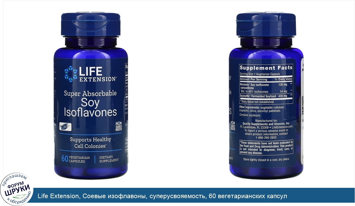 Life Extension, Соевые изофлавоны, суперусвояемость, 60 вегетарианских капсул