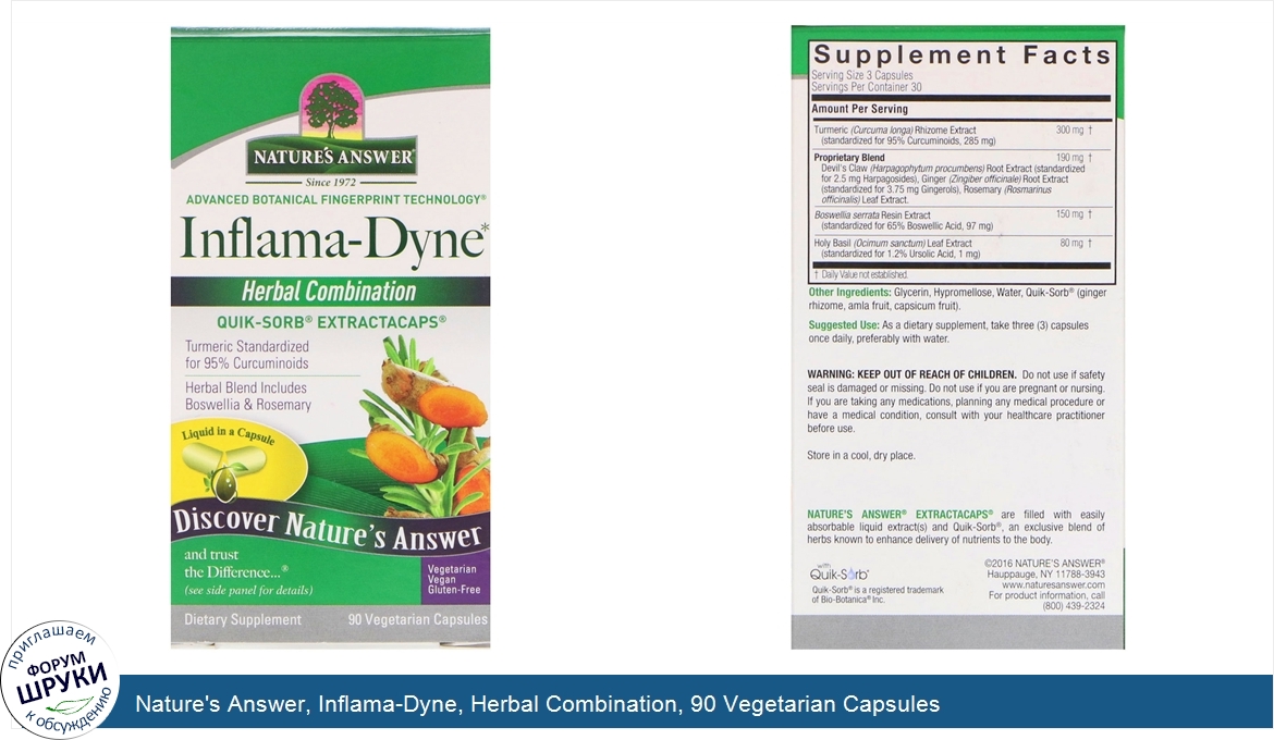 Друзья, если у вас есть отзыв/дополнение/комментарий/вопрос относительно Nature's Answer, Inflama-Dyne, Herbal Combination, 90 Vegetarian Capsules - напишите его ответом в эту тему (это будет полезно всему сообществу в целом и вам в отдельности).