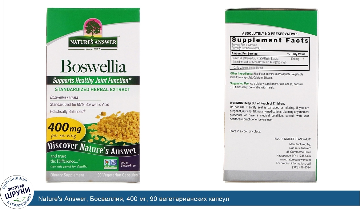 Nature's Answer, Босвеллия, 400 мг, 90 вегетарианских капсул