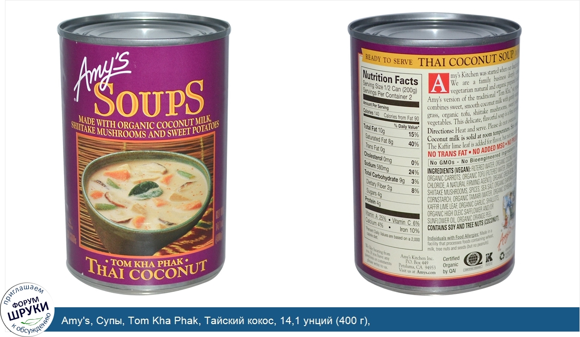 Друзья, если у вас есть отзыв/дополнение/комментарий/вопрос относительно Amy's, Супы, Tom Kha Phak, Тайский кокос, 14,1 унций (400 г), - напишите его ответом в эту тему (это будет полезно всему сообществу в целом и вам в отдельности).