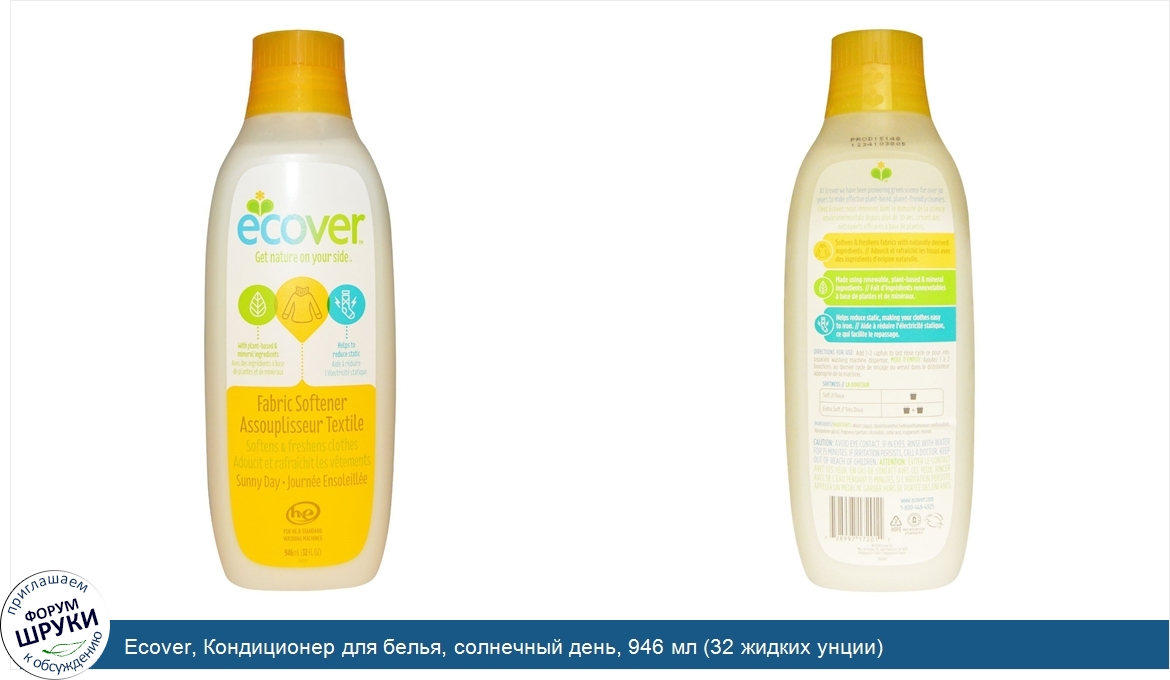 ru Ecover, Кондиционер для белья, солнечный день, 946 мл (32 жидких унции)
