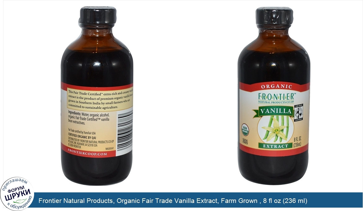 ru Frontier Natural Products, Organic Fair Trade Vanilla Extract, Farm Grown , 8 fl oz (236 ml)