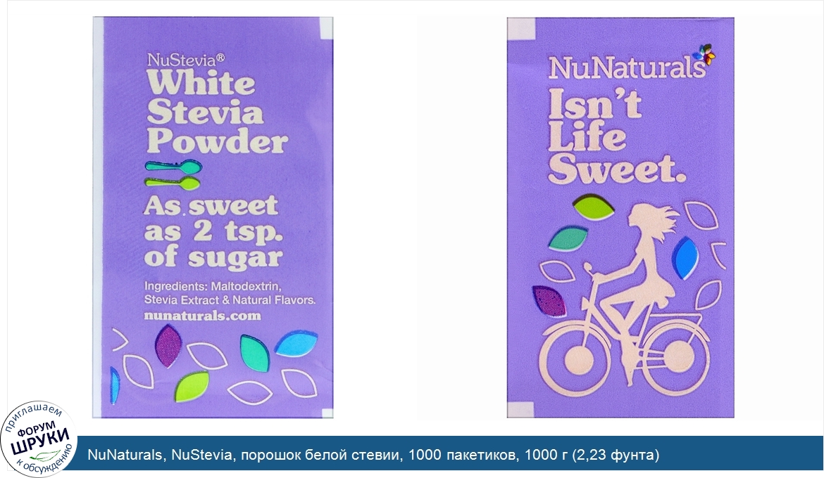 Друзья, если у вас есть отзыв/дополнение/комментарий/вопрос относительно NuNaturals, NuStevia, порошок белой стевии, 1000 пакетиков, 1000 г (2,23 фунта) - напишите его ответом в эту тему (это будет полезно всему сообществу в целом и вам в отдельности).