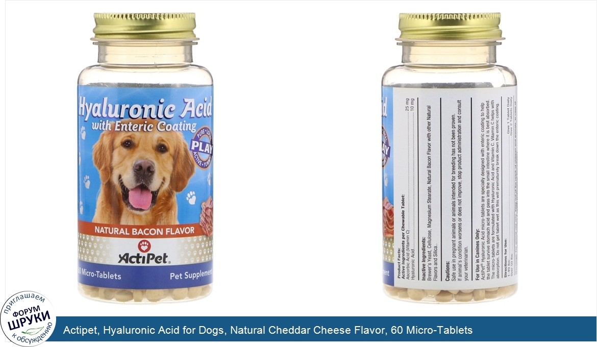Друзья, если у вас есть отзыв/дополнение/комментарий/вопрос относительно Actipet, Hyaluronic Acid for Dogs, Natural Cheddar Cheese Flavor, 60 Micro-Tablets - напишите его ответом в эту тему (это будет полезно всему сообществу в целом и вам в отдельности).