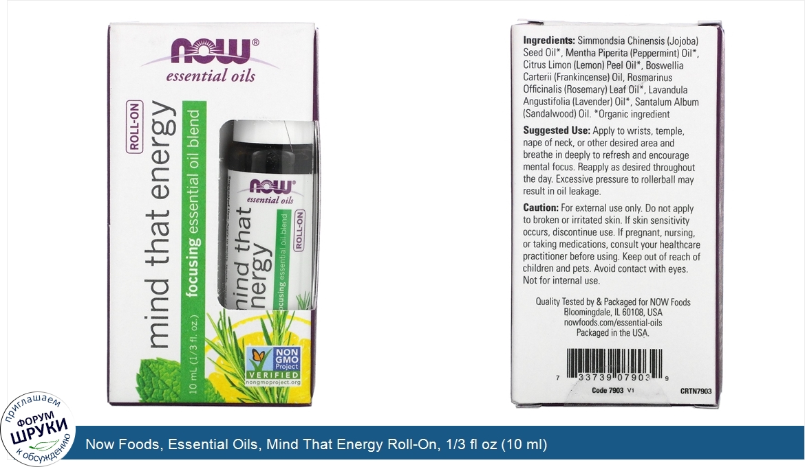 [DESCRIPT]Focusing Essential Oil Blend. Non GMO Project Verified. No Synthetic Fragrances or Chemicals. Cruelty Free and Vegan. Aroma: Minty. Attributes. : Balancing, Centering, Focusing. NOW® Essential Oils are analytically tested for identity, purity, and adulteration to assure the highest quality.[/DESCRIPT]... (описание дополняется)