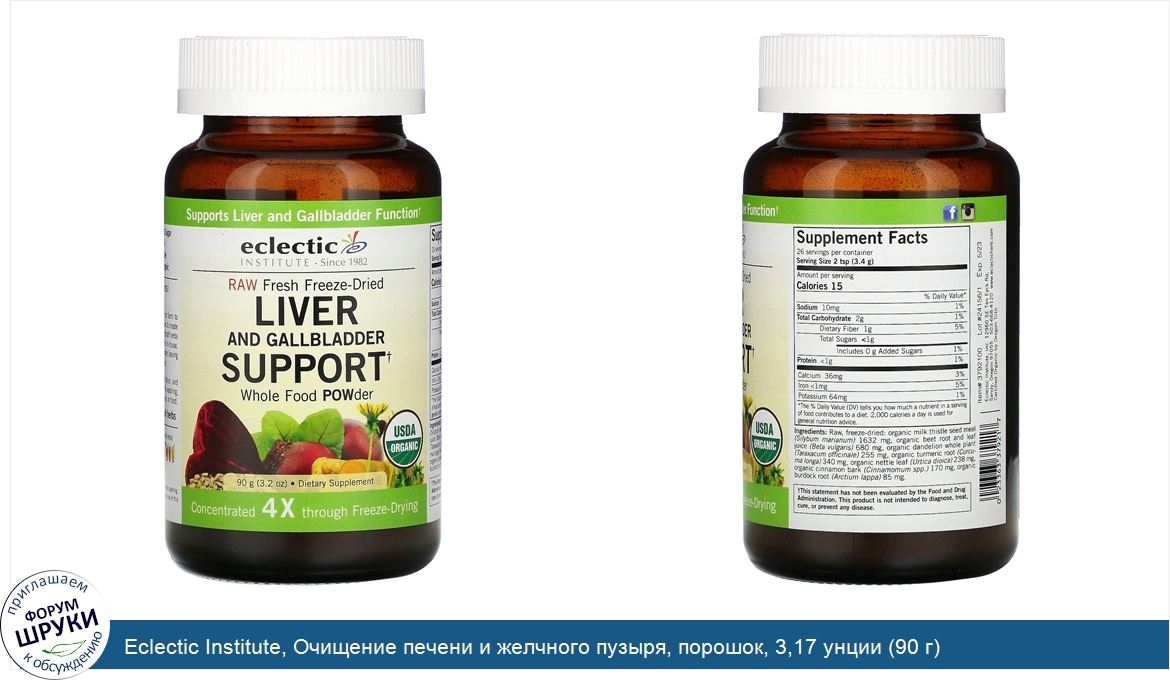 [DESCRIPT]Supports Liver and Gallbladder Function. Since 1982. Raw Fresh Freeze-Dried. USDA Organic. Dietary Supplement. Concentrated 4 X through Freeze-Drying. Non-GMO. Raw, Vegan. Grain/Soy/Dairy-Free. Freeze-Dried. No Added Sugar. No Fillers. Sustainable. 100% Kosher. Certified Organic by Oregon Tilth. Eclectic's POW. ders (Plant Originated Wellness). Simply whole, fresh freeze-dried plants. We Start and End with Whole Herbs - From farm to bottle, we use naturopathic wisdom and innovative processes to create exceptional products. We organically grow or sustainably wildcraft herbs that are harvested at peak potency, and then freeze-dried in-house. Freeze-drying naturally concentrates by removing only the water, leaving the plants' nutrients in the same balance as found in nature. Whole Food Nutrition - Micronized for easy assimilation, and containing all the natural goodness of the whole plant. No washing, no chopping, no cleaning required - just add to water, juice or food.[/DESCRIPT]... (описание дополняется)