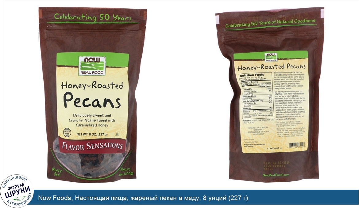[DESCRIPT]Celebrating 50 Years of Natural Goodness. Gluten Free. Kosher. Flavor Sensations. Always Real. Always Non-GMO. Deliciously Sweet and Crunchy Pecans Fused with Caramelized Honey. Unbeknownst to most people there's a field hidden away where giant honey bees live harmoniously within a secret grove of luscious pecan trees. Over the years their delicious honey has seeped into the century-old trees, and today these majestic trees yield the world's tastiest honey-infused pecans. Ok, we may be embellishing a bit, but NOW Real Food Honey Roasted Pecans truly are one of nature's tastiest sensations. There's nothing quite like the sweet and caramelized flavor you get with this magnificent merger, kind of like Grandma's best pecan pie. Our Honey-Roasted Pecans make a great addition to ice cream, yogurt, smoothies, and other delectable delights. No artificial additives or preservatives, just the delicious taste of caramelized honey and pecans in perfect harmony. Because you are what you eat, NOW Real Food has been committed to providing delicious, healthy, natural and organic food since 1968. We're independent, family owned, and proud of it. Keep it natural. Keep it real.[/DESCRIPT]... (описание дополняется)