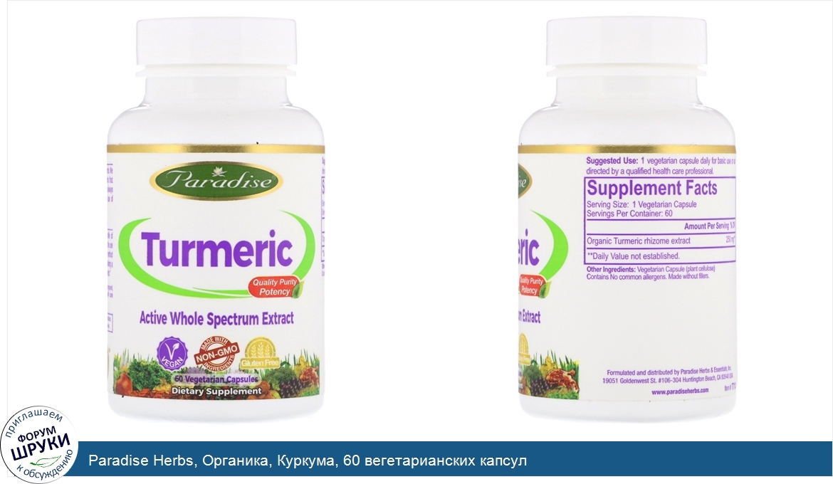 ru Paradise Herbs, Органика, Куркума, 60 вегетарианских капсул