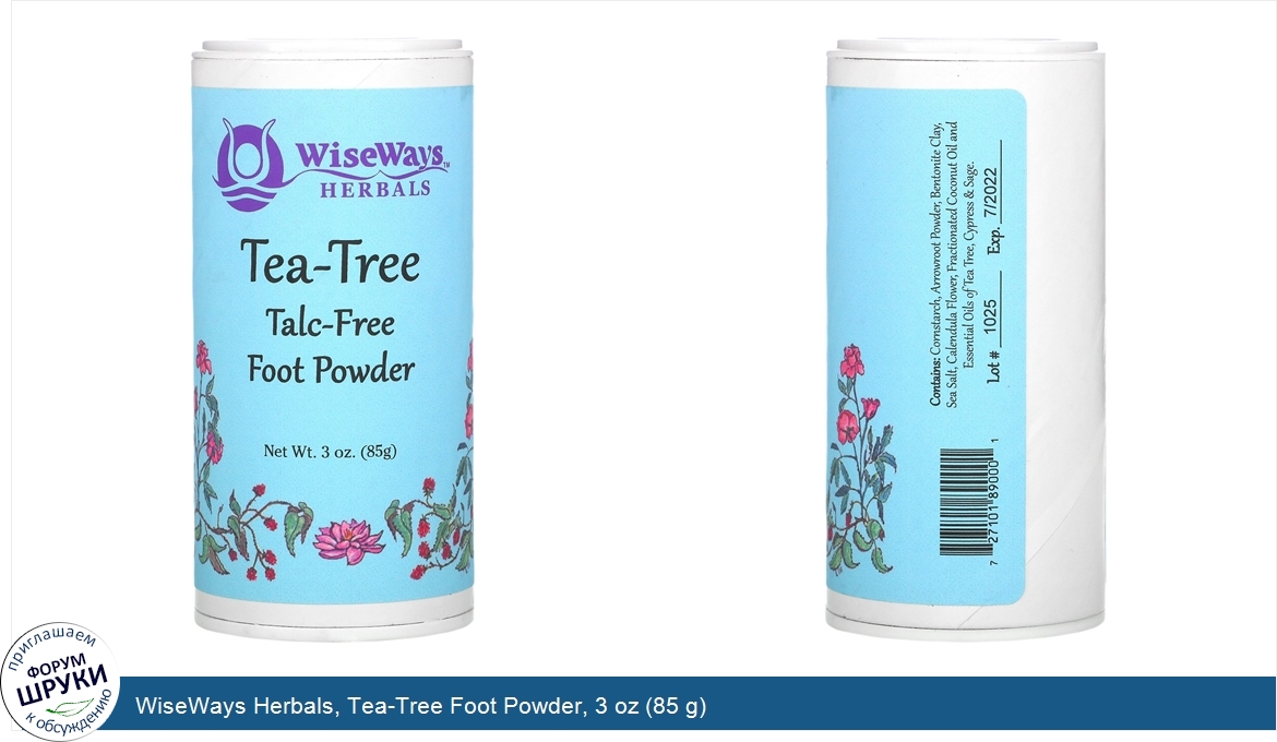 Друзья, если у вас есть отзыв/дополнение/комментарий/вопрос относительно WiseWays Herbals, Tea-Tree Foot Powder, 3 oz (85 g) - напишите его ответом в эту тему (это будет полезно всему сообществу в целом и вам в отдельности).