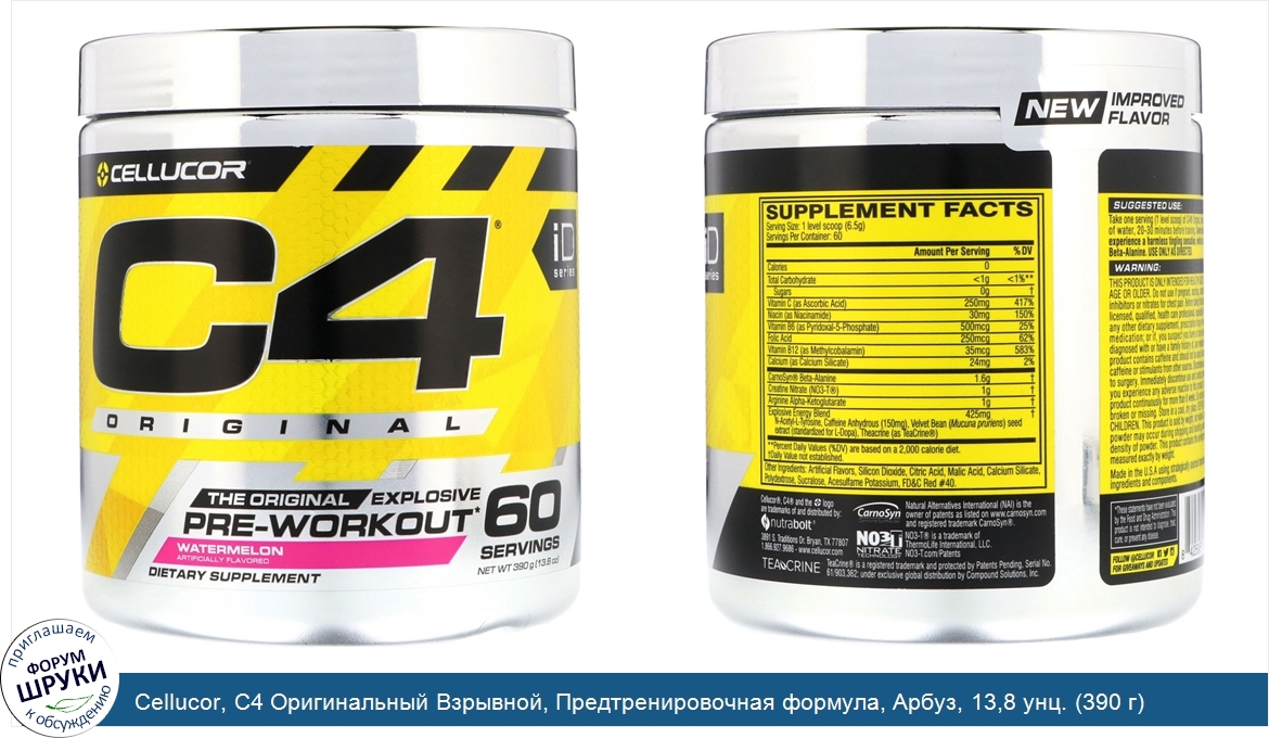 Друзья, если у вас есть отзыв/дополнение/комментарий/вопрос относительно Cellucor, C4 Оригинальный Взрывной, Предтренировочная формула, Арбуз, 13,8 унц. (390 г) - напишите его ответом в эту тему (это будет полезно всему сообществу в целом и вам в отдельности).