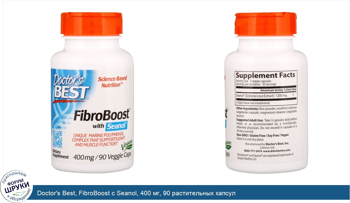 Друзья, если у вас есть отзыв/дополнение/комментарий/вопрос относительно Doctor's Best, FibroBoost с Seanol, 400 мг, 90 растительных капсул - напишите его ответом в эту тему (это будет полезно всему сообществу в целом и вам в отдельности).