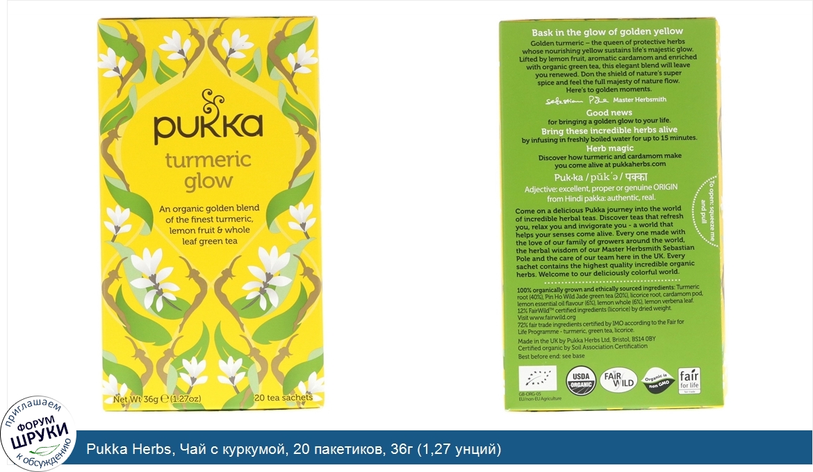 ru Pukka Herbs, Чай с куркумой, 20 пакетиков, 36г (1,27 унций)