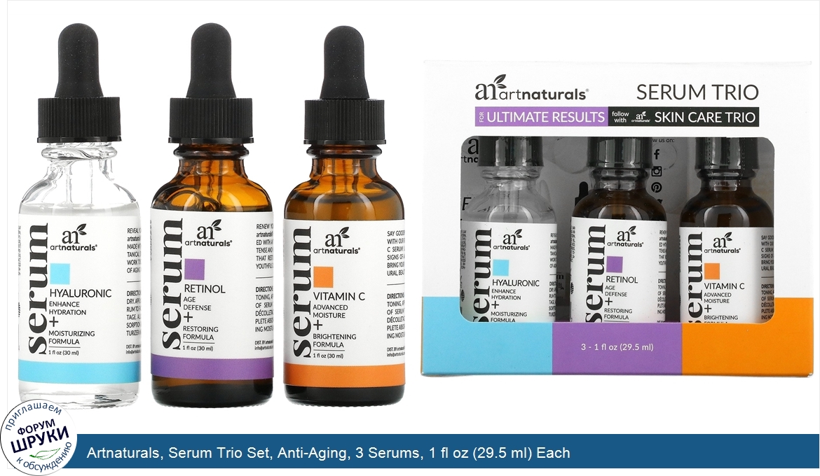Artnaturals, Serum Trio Set, Anti-Aging, 3 Serums, 1 fl oz (29.5 ml) Each