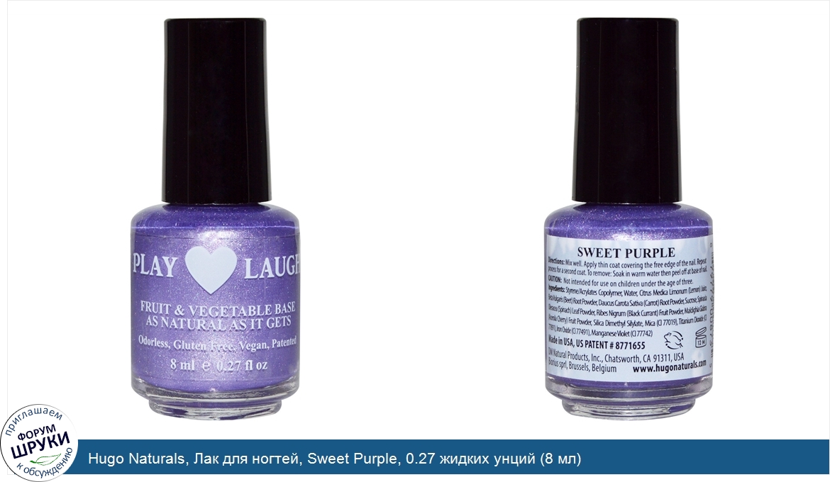 Друзья, если у вас есть отзыв/дополнение/комментарий/вопрос относительно Hugo Naturals, Лак для ногтей, Sweet Purple, 0.27 жидких унций (8 мл) - напишите его ответом в эту тему (это будет полезно всему сообществу в целом и вам в отдельности).
