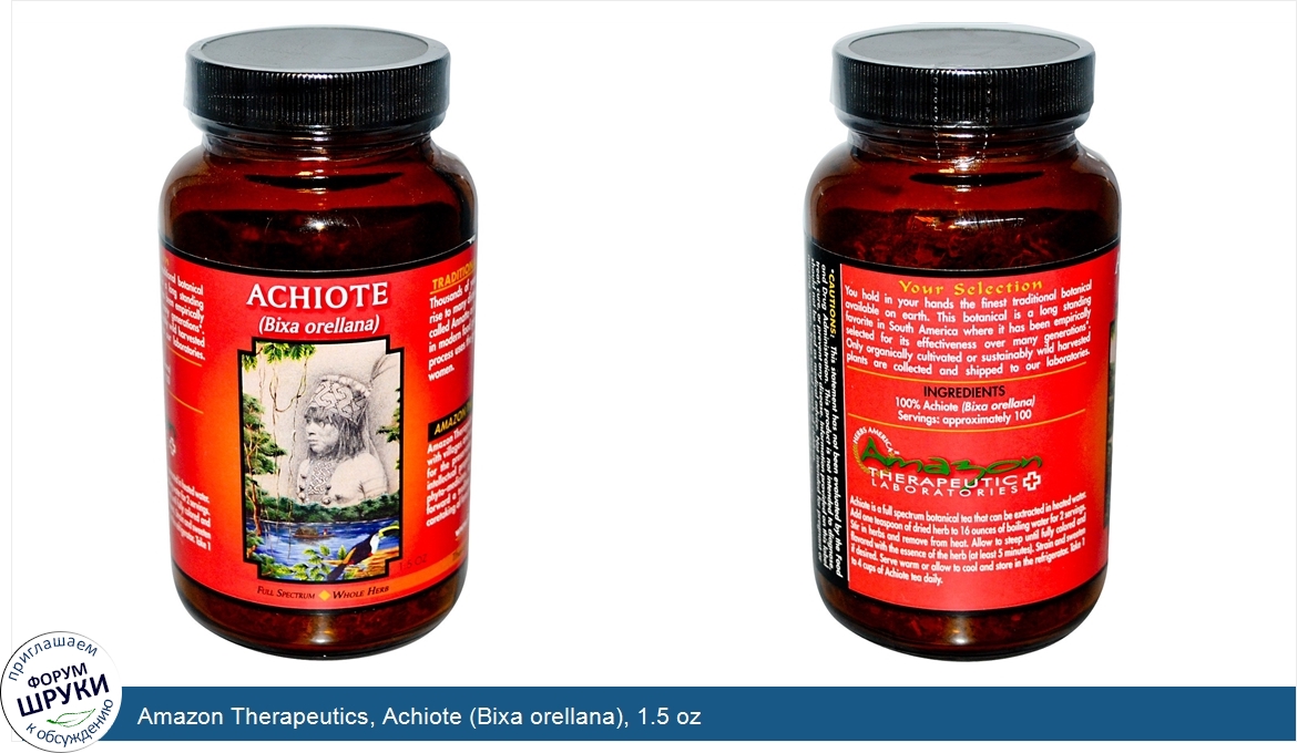 Друзья, если у вас есть отзыв/дополнение/комментарий/вопрос относительно Amazon Therapeutics, Achiote (Bixa orellana), 1.5 oz - напишите его ответом в эту тему (это будет полезно всему сообществу в целом и вам в отдельности).