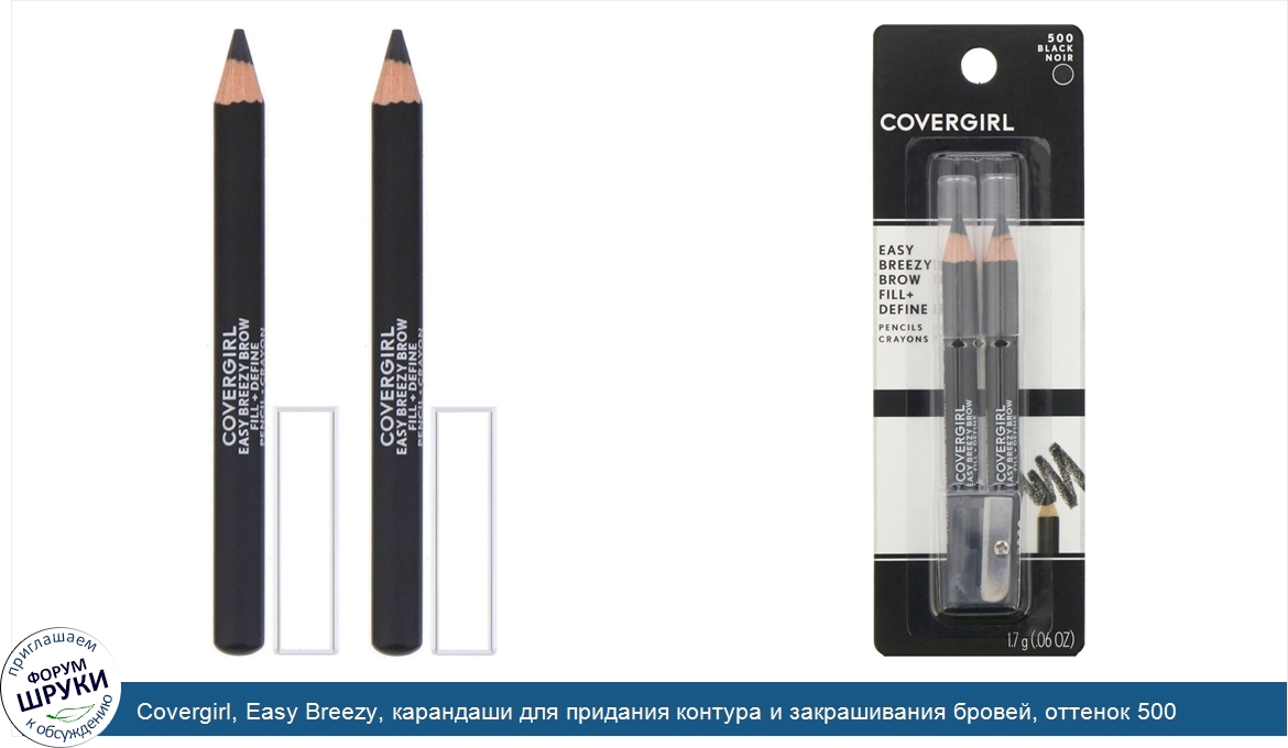 ru Covergirl, Easy Breezy, карандаши для придания контура и закрашивания бровей, оттенок 500 «Черный», 1,7г (0,06 унции)