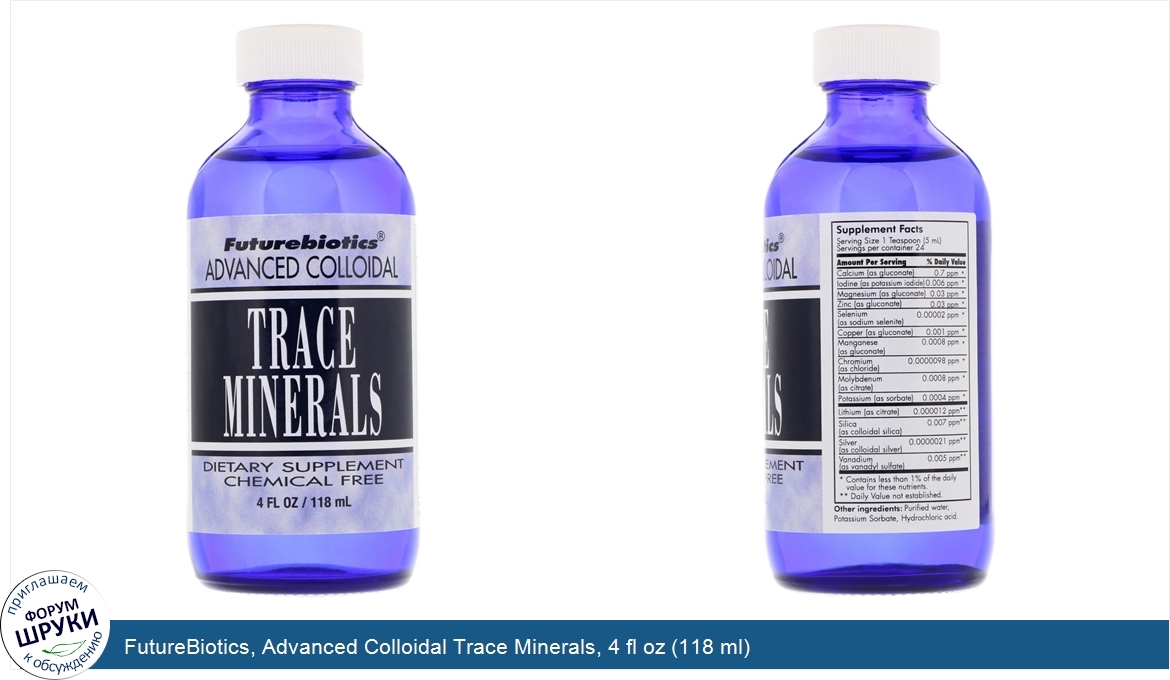 [DESCRIPT]Dietary Supplement. Chemical Free. Futurebiotics invites you to experience the difference that colloidal minerals can make in your life.[/DESCRIPT]... (описание дополняется)