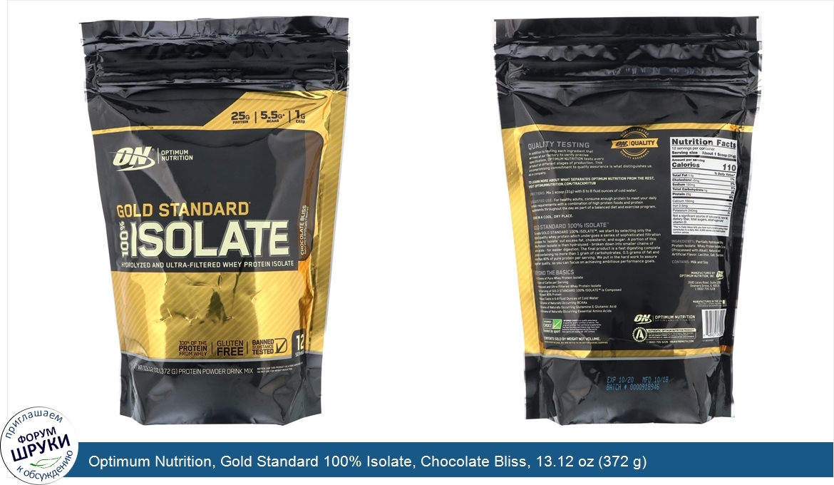 Optimum Nutrition, Gold Standard 100% Isolate, Chocolate Bliss, 13.12 oz (372 g)