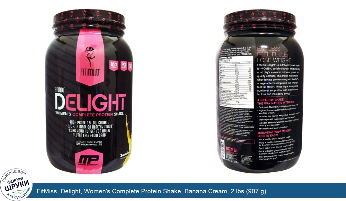 Друзья, если у вас есть отзыв/дополнение/комментарий/вопрос относительно FitMiss, Delight, Women's Complete Protein Shake, Banana Cream, 2 lbs (907 g) - напишите его ответом в эту тему (это будет полезно всему сообществу в целом и вам в отдельности).