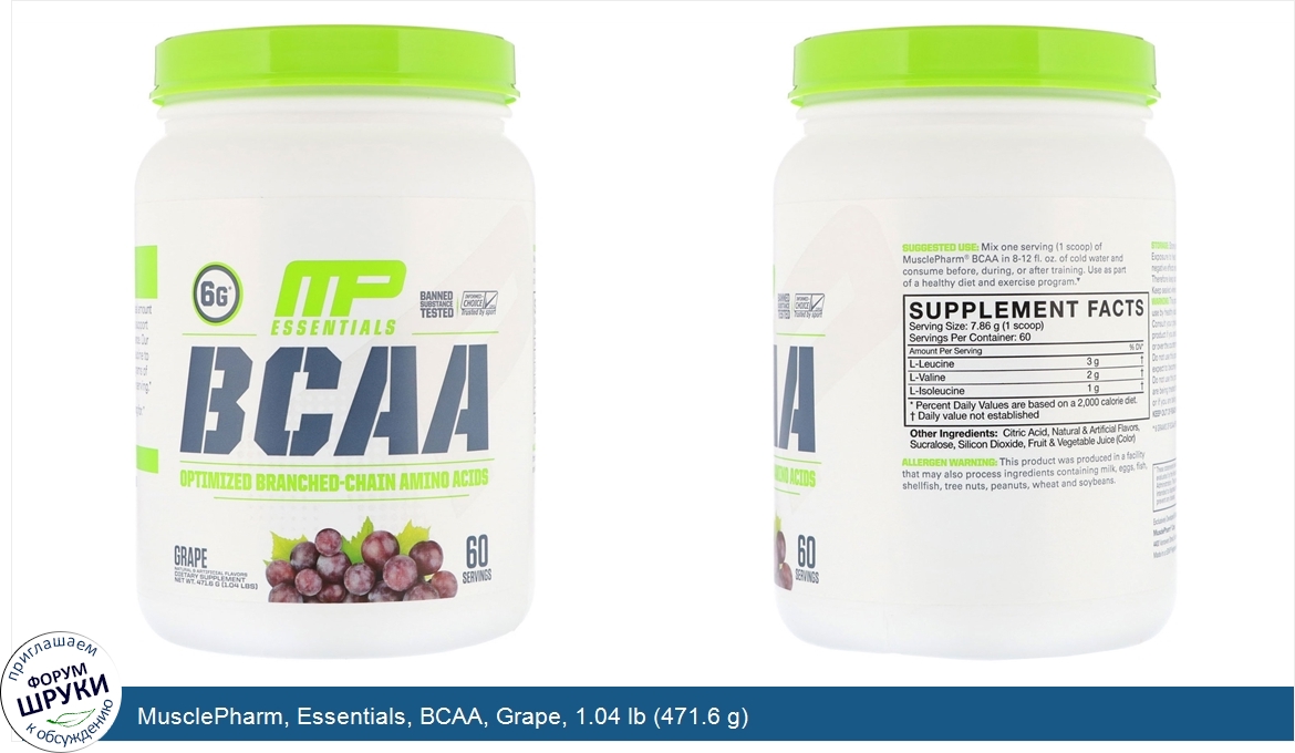 Друзья, если у вас есть отзыв/дополнение/комментарий/вопрос относительно MusclePharm, Essentials, BCAA, Grape, 1.04 lb (471.6 g) - напишите его ответом в эту тему (это будет полезно всему сообществу в целом и вам в отдельности).