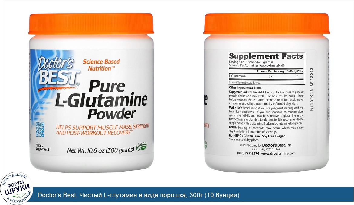 Друзья, если у вас есть отзыв/дополнение/комментарий/вопрос относительно Doctor's Best, Чистый L-глутамин в виде порошка, 300г (10,6унции) - напишите его ответом в эту тему (это будет полезно всему сообществу в целом и вам в отдельности).