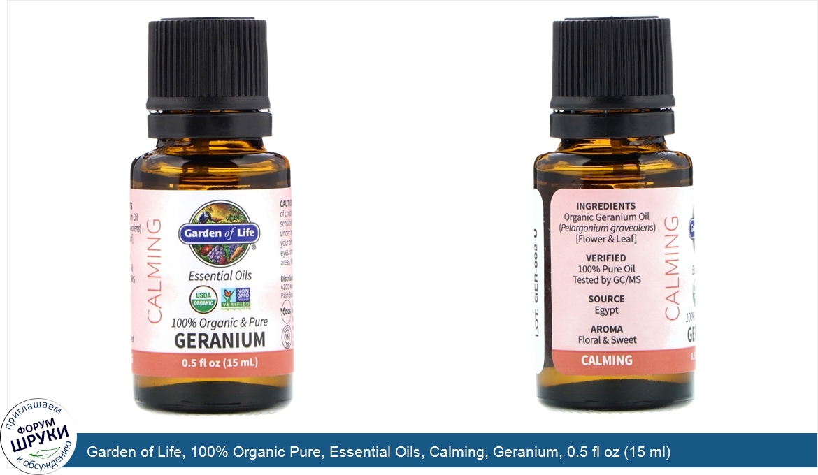 Garden of Life, 100% Organic Pure, Essential Oils, Calming, Geranium, 0.5 fl oz (15 ml)
