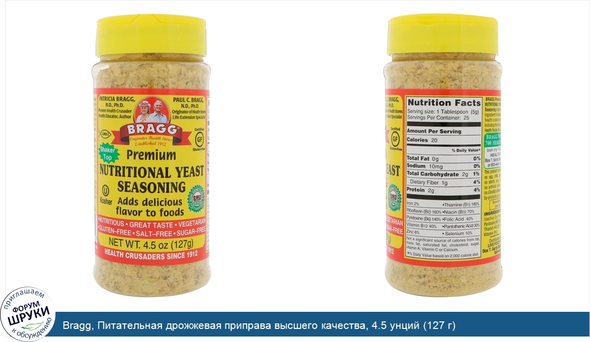 Друзья, если у вас есть отзыв/дополнение/комментарий/вопрос относительно Bragg, Питательная дрожжевая приправа высшего качества, 4.5 унций (127 г) - напишите его ответом в эту тему (это будет полезно всему сообществу в целом и вам в отдельности).