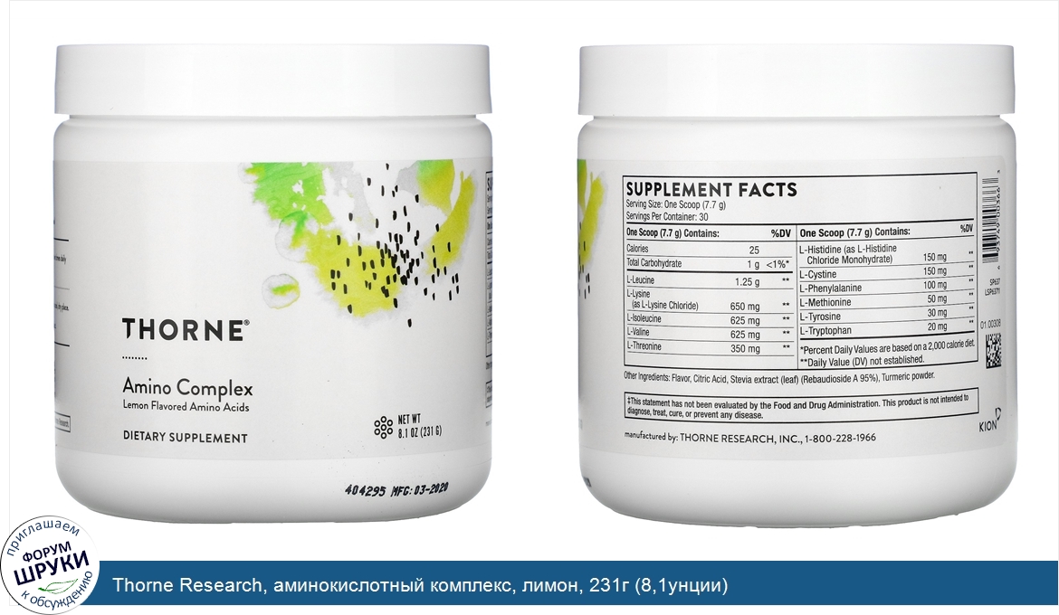 Категории: Thorne Research, Пищевые добавки, Аминокислоты, Смеси аминокислот, Торн Ресерч, 71890