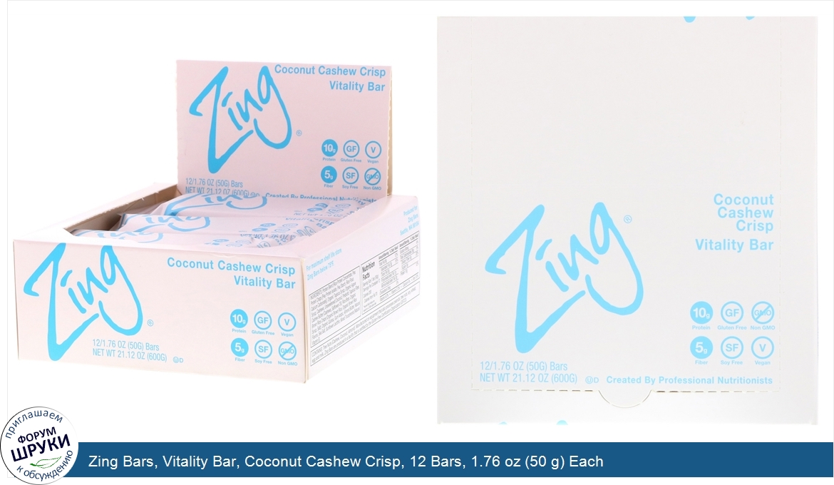 Друзья, если у вас есть отзыв/дополнение/комментарий/вопрос относительно Zing Bars, Vitality Bar, Coconut Cashew Crisp, 12 Bars, 1.76 oz (50 g) Each - напишите его ответом в эту тему (это будет полезно всему сообществу в целом и вам в отдельности).