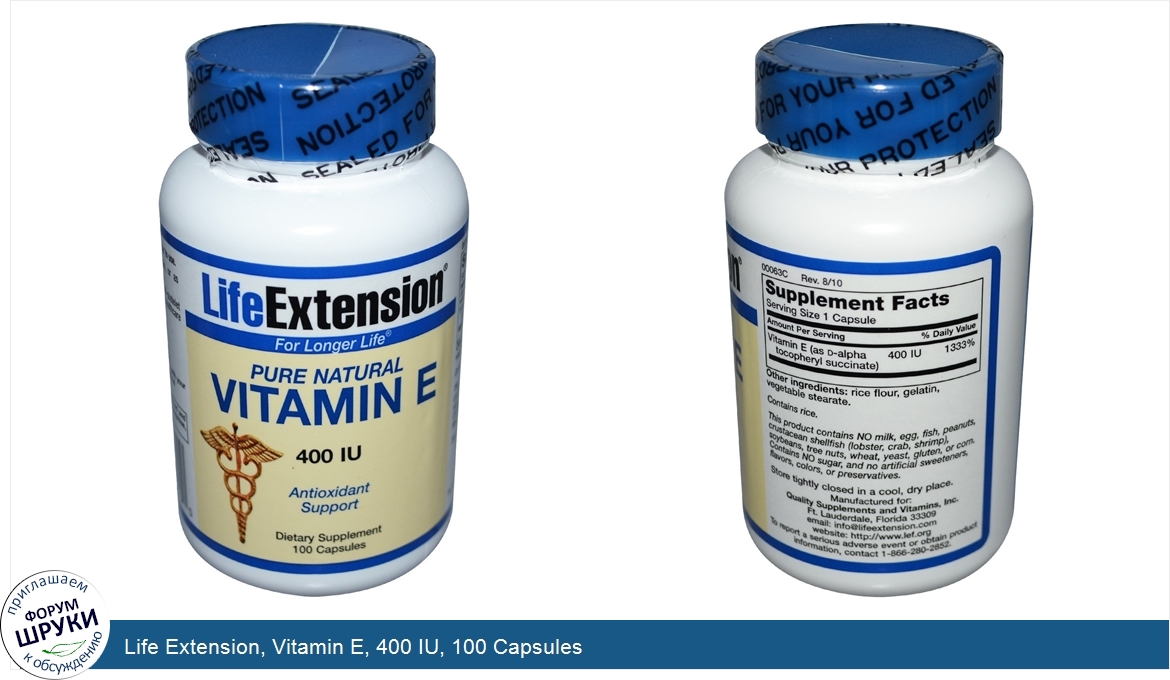 Друзья, если у вас есть отзыв/дополнение/комментарий/вопрос относительно Life Extension, Vitamin E, 400 IU, 100 Capsules - напишите его ответом в эту тему (это будет полезно всему сообществу в целом и вам в отдельности).
